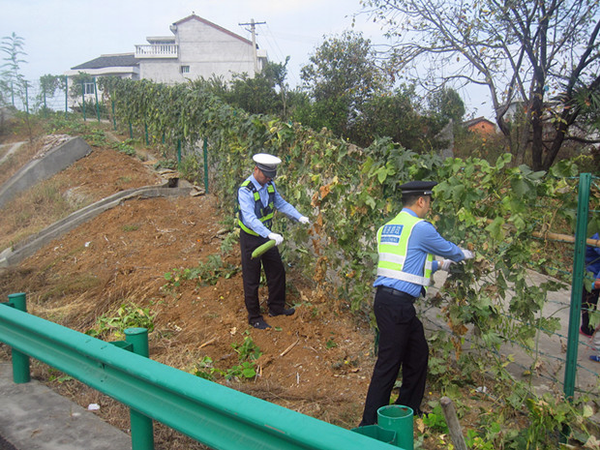 路警人员采取宣传教育与联合整治相结合的方式,一方面组织人员深入沿线村镇进行走访宣传,播放《公路安全保护条例》等法律法规内容,发放500余份宣传资料,张贴20余幅宣传横幅,增强沿线群众爱路、护路意识;另一方面对辖区违法种植物情况进行摸底排查,做好户主、种植物面积等资料的收集,制定清理整顿方案,对于面积较小的菜地,执法人员耐心说服、协助当事人对菜地进行清除;对面积较大的菜地或者当事人拒绝进行清理的菜地,联合当地政府、村镇组织等部门进行协调清理;对于一些无主菜地,组织人员携带工具进行清除。同时,加大日常巡查力度,重点排查离村镇较近的公路用地区域,做到早发现,早制止,巩固治理成果。