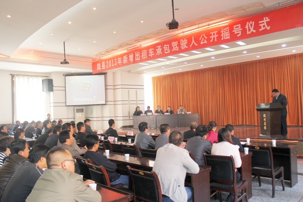 10月22日,陇县举行新增出租车承包人摇号仪式。公开摇号在县监察部门和公证处的监督下进行,宝鸡市运管处、县人大、政协等部门领导参加了活动,县监察局、县电视台、县公证处、人大代表、县政协委员以及222名申请人进行了现场监督。