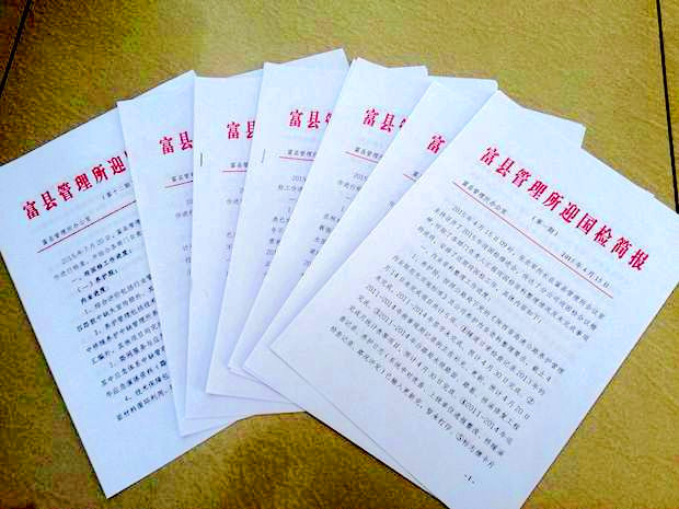 迎国检工作以来,在部门周检查、管理所月检查的基础上,富县管理所还组织了4次部门间的互查,共刊发迎国检简报12期,通报整改问题318项,迎国检工作稳步、高效推进。