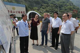 8月27日,俄罗斯联邦交通部阿萨乌尔副部长在中国交通运输部翁孟勇副部长、陕西省政府庄长兴副省长、胡保存副秘书长、交通运输厅冯西宁厅长、杨育生副厅长、陕西交通集团乔怀玉总经理等陪同下,视察秦岭终南山公路隧道。