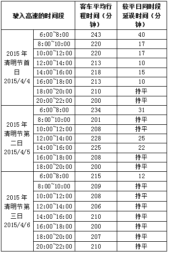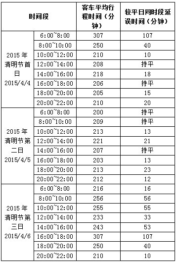 同时根据省气象局发布信息,清明期间我省大部分地区以阴雨天气为主,清明小长假三天陕西高速公路每天具体流量预测如下:4月2日流量约81.1万车·次,4月3日约105.2万车·次,4月4日约117.2万车·次。