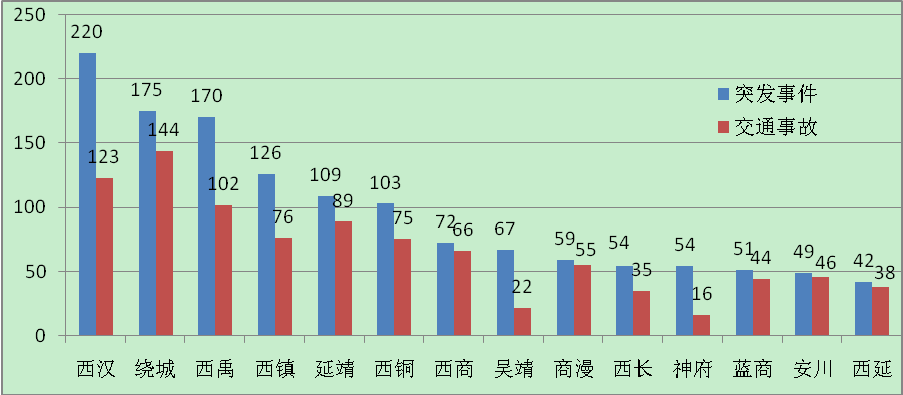 西禹高速、西商高速的突发事件、交通事故数均较上年有所增加,其中西禹高速突发事件增长部分主要为恶劣天气导致的道路封闭,西商高速突发事件增长部分主要为交通事故;西长高速、商漫高速、吴靖高速、西汉高速、绕城高速、西镇高速、吴靖高速、延靖高速突发事件数量、交通事故数量实现双降,主要原因为货车比例下降,路网交通流量的时间分布较去年更均匀。