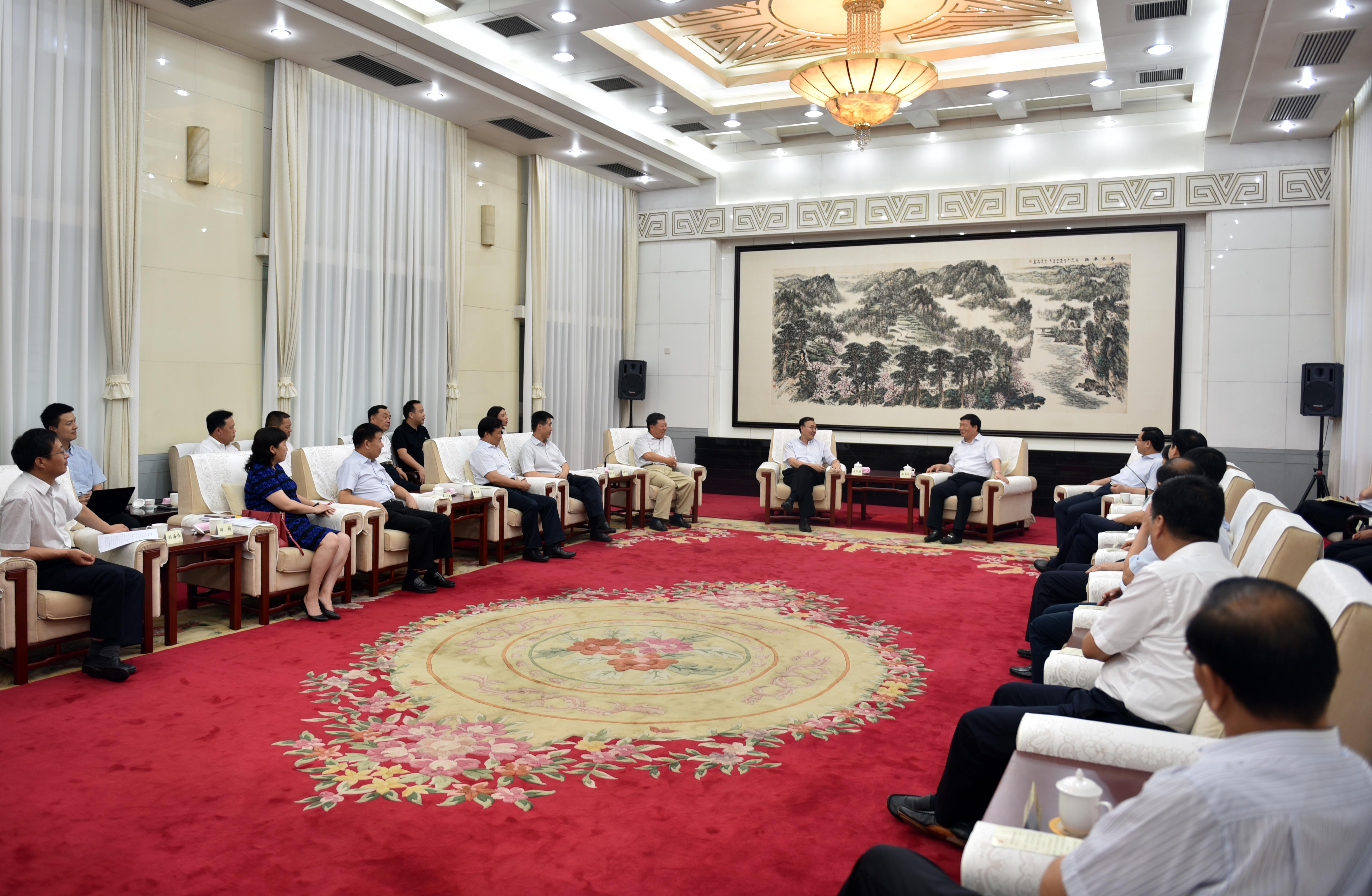 7月29日下午,省委书记娄勤俭、省长胡和平会见国家邮政局局长马军胜,中国快递协会会长高宏峰并就提升陕西快递业发展、更好促进“一带一路”建设等话题深入交换意见。省委常委、省委秘书长刘小燕,副省长庄长兴等省领导陪同会见。