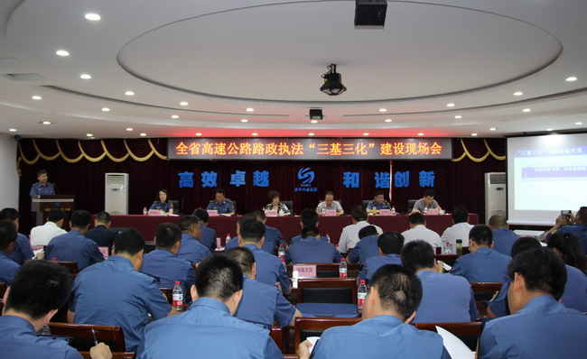 省路政执法总队陈拴会总队长在讲话中全面总结回顾了“三基三化”建设以来取得的成绩,指出了存在的问题和不足,提出要以优化基层执法队伍结构为切入点,着力解决一线执法力量不足的问题;以加强基层执法机构领导班子建设为切入点,着力解决执法队伍整体素质不高的问题;以加强执法执勤规范化建设为切入点,着力解决执法行为不规范的问题。针对全系统“三基三化”建设发展不平衡,部分单位业务和管理不够规范,基层执法力量比较薄弱,执法信息化建设比较滞后等问题,他要求各单位要对照“三基三化”建设考评验收标准,对建设工作进行一次“回头望”,进一步查漏补缺,整改落实。一是要加强组织领导,明确工作责任,狠抓工作落实,全面完成“三基三化”建设各项任务;二是要抓好统筹协调,充分考虑“三基三化”建设与路政执法业务工作之间的关联性,从本单位、本部门实际出发,充分发挥辖区内“三基三化”建设示范点的引领带动作用,抓住重点、创新机制,充分实现“以点带线、以线促面、全面建成”的工作目标;三是要强化督导检查,帮助基层协调解决建设工作中的重点、难点问题,通过“三基三化”建设,实现“基层执法人员结构明显优化,队伍素质明显提升,执法保障明显加强,管理制度明显规范,执法能力明显增强,服务水平明显提高,整体形象明显改观”的建设目标,全力开创我省高速公路路政执法工作新局面。