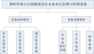注:为进一步提升在役长大公路隧道消防水系统监管效率与智能化管理水平,根据秦岭终南山公路隧道实际运营管理及应急救援情况,借助隧道现有运营管理模式和监控系统资源,隧道分公司积极开发基于Delphi的秦岭终南山公路隧道高位水池水位监测与控制系统软件,通过搭建传感器、PLC控制器和工业以太网等硬件体系完成液位数据采集、远程交互及水泵控制功能,利用隧道分公司监控中心增设的高位水池管理机与控制管理软件,实现秦岭终南山公路隧道消防高位水池水位远程监测及控制,使隧道高位水池水位控制更加智能化、实时化;该研发软件系统操作简便,响应及时,易于推广使用。本系统软件架构如下图所示:
