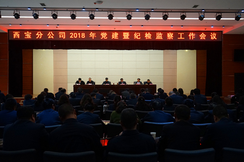会上党委书记陈浩作了题为《立足新时代 对标新要求 努力实现西宝分公司党建工作新作为》的党建工作报告。报告要求各级党组织要立足新时代,正确把握党的建设新要求,坚持以政治建设为统领、以思想建设为根基、以组织建设为核心、以作风建设为关键、以纪律建设为准绳、以制度建设为保障,不断提升党建质量和水平。报告从六个方面对2018年党建工作作出了部署,一是以政治建设为首位,强化党员思想武装;二是以国企党建要求为指导,强化党委主体责任;三是以推进品牌化为抓手,强化基层组织建设;四是以解决突出问题为关键,驰而不息正风肃纪;五是以文化引领为助推,提升企业精神文明;六是以凝心聚力为目标,积极发挥工团职能。