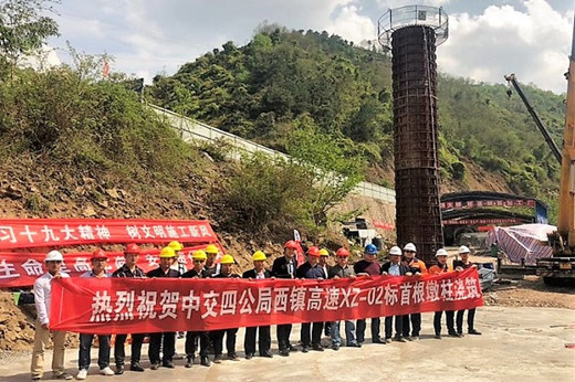 3月31日上午10时,由中交第四公路工程局承建的西镇高速公路XZ-02合同段檀木村特大桥首根墩柱顺利浇筑完成。