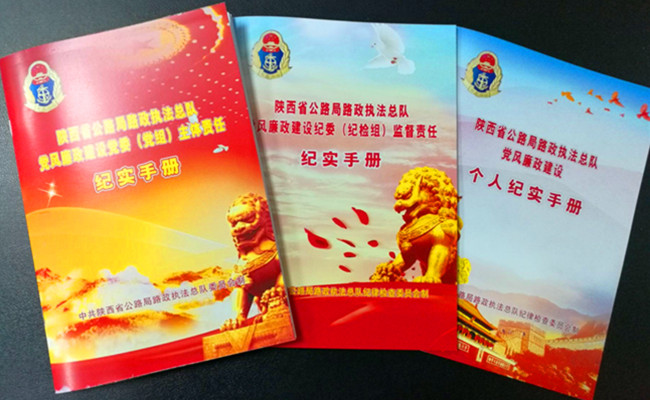 日前,省路政执法总队党委向全系统党委(党组)、纪委(纪检组)领导班子成员和副处级以上领导干部发放了《陕西省公路局路政执法总队党风廉政建设党委(党组)主体责任纪实手册》、《陕西省公路局路政执法总队党风廉政建设纪委(纪检组)监督责任纪实手册》和《陕西省公路局路政执法总队党风廉政建设个人纪实手册》,狠抓党风廉政建设纪实工作,扎实推进“两个责任”落地生根。