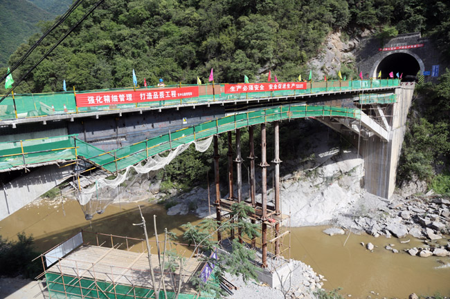 4月2日,316国道留坝武关河跨径60米的刚架拱桥拱顶下扰7厘米,鉴定为四类危桥,必须封闭加固。因该段为我省危化品入川的唯一通道,交通保畅压力巨大。同时,此处为南水北调水源地,环境保护任务异常艰巨,备受社会关注,省委胡和平书记批示要求尽快恢复通行,省厅、省局高度重视,市县政府全力协调,汉中公路局按照应急抢险工程日夜奋战、全力推进。为了确保按期完成加固工程,汉中公路局成立了指挥部、工程项目部,抽调精兵强将加强项目管理,开展“决战60天确保桥梁加固应急抢险如期完工”劳动竞赛活动,目前已经完成总工程量的68%。万振江局长在查看施工组织、现场管理、听取汇报后,提出五点要求:一是该路段是危化品由陕入川的唯一通道,保畅压力巨大,社会高度关注、急切期盼,务必确保在6月底前完工;二是严格按照拱桥平衡对称施工法则,确保施工过程中桥梁主体结构安全;三是切实加强监理监督和质量控制,加大监理旁站、加大抽检频率、加强检测验收,确保每一个环节不出纰漏;四是要按照应急抢险工程的要求完善各项手续,及时收集整理好归档资料,确保资料齐全完善;五是要认真总结加固经验,深刻分析病害原因,极大可能延长桥梁寿命周期,经受住历史检验。