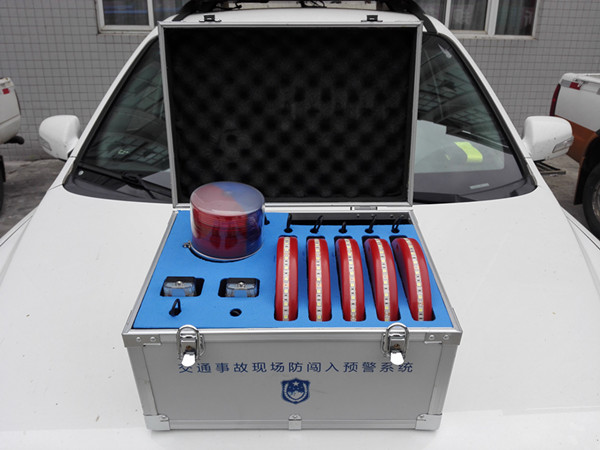 7月5日该设备正式在隧道亮相,设备全称为“交通事故现场防闯入预警系统”,这是用于道路交通事故现场警戒线的设置。该设备由无线预警监测器、报警大灯、报警肩灯、充电运输箱四大部分组成。一套系统配备五个无线预警器,单个无线预警器感应距离为300米,可独立工作,也可以实现无线串联,五个感应器串联工作距离可以达到1500米。当车辆非法闯入警戒区,系统可及时报警,提示事故现场路政人员及时避让,可有效防范二次交通事故的发生。