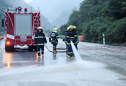 灾情发生后,分公司领导带领值班干部和路政、养护人员火速赶往洪花寺隧道、才子隧道等水毁较为严重的路段现场指挥。路政人员协助高速交警在略阳立交、略阳主线收费站对甘肃、安康方向车辆紧急分流。西乡、汉台、勉县3个管理所迅速调集铲车、自卸车,组织抢险队伍,携带抢险物资、设备、柴油及应急食品,赶往略阳参与抢险。当天中午一点半,才子隧道泥石流清理完毕,甘肃往汉中方向道路畅通,略阳主线站入口滞留车辆正常上路通行。下午五点半,洪花寺隧道出口泥石流清理完毕,略阳县往甘肃方向道路全部畅通,滞留车辆有序进站,安全通行,至此十天高速西乡至略阳段全线畅通。