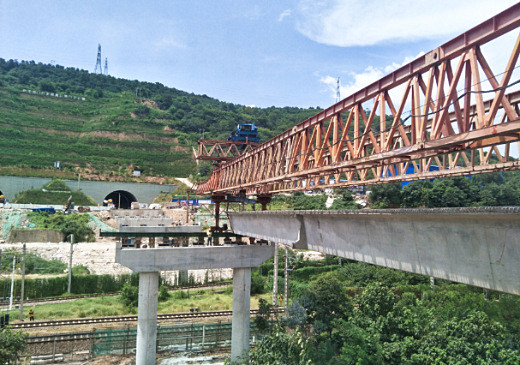 宝鸡过境公路神农高架桥于路线K324+639.31处与宝成铁路(K6+290.64)相交,交角86°,采用3×40m预应力先简支后变连续箱梁跨越铁路,单片箱梁建筑高度2.18米,下部结构为双柱式墩桩基础。神农高架桥跨宝成铁路是宝鸡过境公路项目全线的控制性工程之一,施工难度大,安全风险等级高,该桥的架梁施工是制约宝鸡过境公路项目能否按计划在年内实现通车目标的控制性节点工程。神农高架桥跨宝成铁路箱梁架设施工的启动,标志着宝鸡过境公路项目桥梁施工步入攻坚阶段,为后续的跨铁路预制箱梁架设施工积累了经验,也为项目全线顺利贯通奠定了坚实的基础。