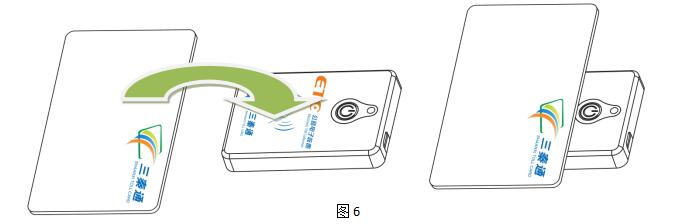 (6)轻按蓝牙充值设备开关键,指示灯亮,设备蓝牙模块同时启动,将三秦通卡放到读卡器上,如图6所示: