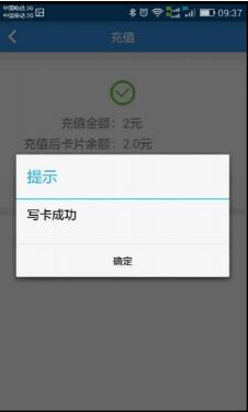 (10)手机银行支付成功后,系统返回“支付交易成功”提示,点击手机界面“返回商户”按键,系统会跳转到充值写卡页面进行写卡操作,如图9所示: