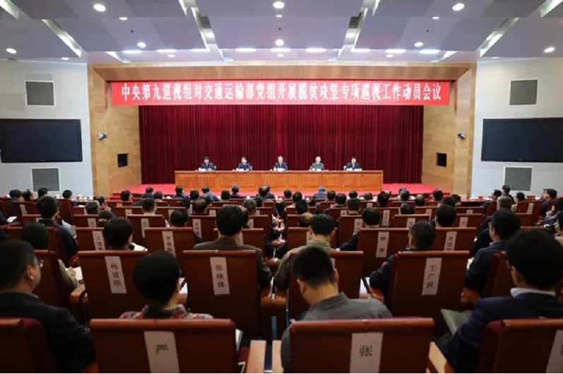根据中央关于巡视工作的统一部署,2018年10月20日上午,中央第九巡视组对交通运输部党组开展脱贫攻坚专项巡视工作动员会召开。会前,中央巡视组向全国政协副主席、交通运输部党组书记杨传堂,党组副书记、部长李小鹏传达了习近平总书记关于巡视工作的重要指示精神,通报了有关工作安排。会上,中央第九巡视组组长吴瀚飞就即将开展的脱贫攻坚专项巡视工作作了讲话,并就配合做好巡视工作提出要求。杨传堂主持会议并作表态讲话。