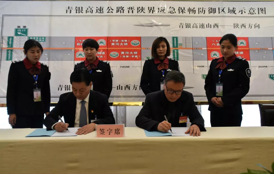会上,按照“立足长效治理、应急保障有力、共建平安交通”的总体思路,陕西交通集团吴靖分公司、山西交控集团吕梁南分公司就如何保证晋陕省界桥梁、隧道通行畅通等问题积极建言献策。吕梁市政府、晋陕双方交警等部门作了表态发言,全力支持高速公路运营公司做好晋陕界道路安全保畅工作。吴靖分公司与吕梁南分公司达成一致共识,并签订了《G20青银高速公路晋陕界安全应急保畅协作协议》。一是在青银高速K1042至K1053处设立11公里的安全应急保畅防御区域,采取双方省界站延迟30分钟封闭出入口的措施,及时疏散滞留在黄河大桥及隧道内的车辆。二是建立和完善晋陕两省信息交流平台,实现两省运营分公司之间,路政、交警及省界收费站之间的信息共享机制。三是建立紧急情况下的特殊协作机制,通过提前管控、提前分流、平交道口回头避险等应急措施,避免八盘山隧道和黄河大桥及前庙山隧道滞留车辆而引发重大事故。四是建立联动应急演练制度,每年8月份举行应急保畅演练,不断提升双方道路保畅和应急处置能力。五是建立应急联动协作联席会议制度,每年9月至10月份召开一次年度联动应急保畅座谈会,总结经验交流,从而形成长效合作机制。