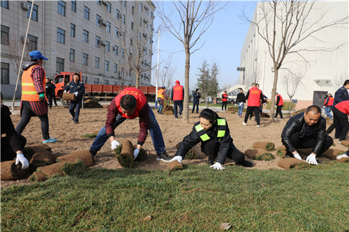 1800余平方米的绿化区域以科室为单位,被划分成6块责任区域,参加义务植草的人员在各自的“责任田”内干的热火朝天,有的搬运草坪,有的平整土地,有的铺种草皮……大家分工有序,配合默契。植草过程中,一些志愿者们的衣裤被草皮里渗出的泥水打湿,手掌被坚硬的石子砾划伤,但大家却依然干的起劲儿。“这么大的绿化区域,全是我们职工自己干,大家虽然辛苦,但能通过自己的双手让单位变得美起来,也是一种幸福、一种满足”一位参加现场植草活动的志愿者说道。从早上到下午,通过6个多小时的辛勤劳作,分公司院内1800余平方米的荒地旧貌焕新颜,一片绿意盎然。