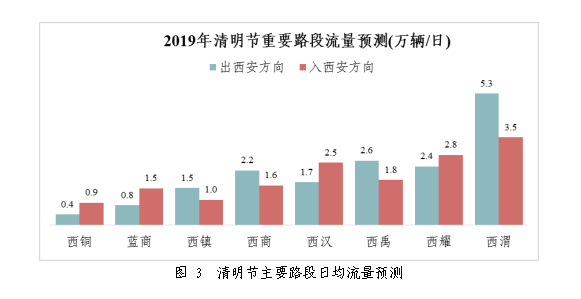2019年清明节期间,预计西渭、西耀、西禹、西汉高速车流量较平日将有大幅度增长。热门景区周边高速公路车辆通行压力将高于往年,尤其是景点相对集中的西渭高速(潼关至兵马俑双向)、西禹高速(禹门口方向)、西汉高速(西安方向)。