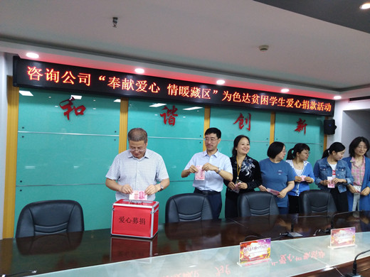 近日,省高速集团咨询公司响应中国交通建设监理协会“教育扶贫显担当 同心共襄筑希望”为色达孩子爱心助学倡议,积极开展“奉献爱心 情暖藏区”为色达贫困学生爱心捐款活动,以实际行动为贫困地区孩子奉献一份爱心,彰显高速咨询监理人强烈的社会责任和勇于担当的精神。