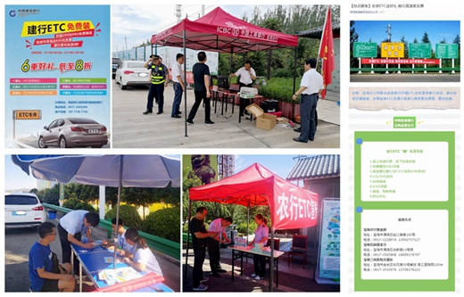 为加快推进ETC发行安装,近期,省高速集团宝鸡分公司联合沿线多家银行在收费站广场举办ETC安装宣传推广活动,组织收费员学习ETC办理知识,在分公司微信公众号普及ETC便捷优势和办理点联系方式。