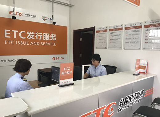 富平管理所ETC发行服务站标准化示范点设立在管理所院内,办公大厅墙上悬挂有“三秦通电子标签(OBU)”用户办理流程、“三秦通记账卡”用户销户办理流程、“三秦通记账卡”用户换卡及签约变更办理流程、“三秦通记账卡”用户办理流程等内容,并设置了两个业务办理柜台。服务站每天按时按点播放广播,向通行收费站的司乘人员宣传ETC无需停车、无需排队、轻松缴费等方面的优势,吸引司乘人员前来办理ETC,使广大司乘人员最大便利的享受“随停随办、即办即走”的高效办理流程。