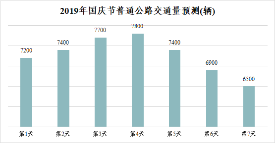 预计2019年国庆节期间,我省普通干线公路网日均交通量约为7300辆,是平日流量的1.24倍。