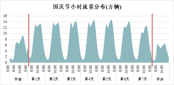 预计2019年国庆节期间,高速公路网总交通量约1345万辆,日均流量约192万辆,同比增长约9%,是平日流量的2倍。其中一型客车车流量占比约87%,日均流量约167万辆,同比增长约10%。