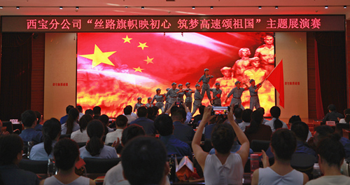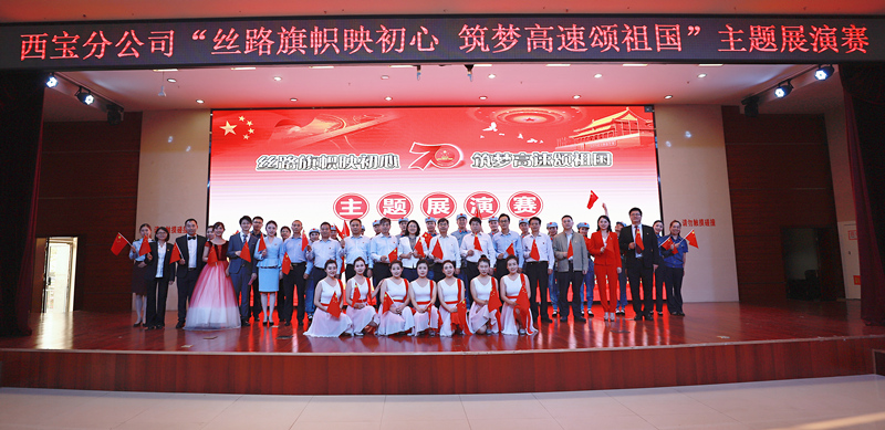 活动在上午举行了升国旗唱国歌仪式。下午,举办了“丝路旗帜映初心 筑梦高速颂祖国”主题展演赛。表彰了分公司24个“党员示范岗”,开展了微党课大比拼、“丝路旗帜”党建品牌建设成果展示、党建知识现场抢答、庆祝新中国成立70周年文艺展演等环节。微党课紧密结合时代特征和党员需求,将党史与新中国70年来的变迁通过视频、讲述等形式呈现;各党支部结合特色主题建设,充分将西宝分公司“丝路旗帜”党建品牌创建成果进行展示;文艺节目通过舞蹈、朗诵等形式,热情讴歌了新中国建设取得的辉煌成就,展示了西宝员工昂扬向上、积极进取的良好精神风貌,分公司领导参与的诗朗诵《青春中国》将展演赛推向高潮。展演赛在全场合唱《歌唱祖国》、挥舞五星红旗中圆满落幕。