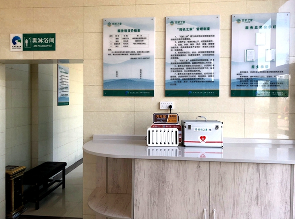 “司机之家”主旨是改善广大货车司机的工作、休息环境,提升货车司机的职业尊严和幸福感。横山服务区“司机之家”建设充分考虑当下货运司机职业痛点,在休息环境、停车安保、服务功能方面进行全面升级。“司机之家”室内外装饰整体色调采用绿色,环境淡雅、舒适,设置了独立休息大厅、配备了男女淋浴间,提供淋浴、洗衣、烘干服务。停车场、休息区内增设监控设备,大厅配备按摩椅、液晶电视、有声读书角,提供WiFi服务、爱心药箱、手机充电、24小时开水供应等便民服务。还推出“司机之家”专属优惠活动,为广大货车司机提供质优价廉的餐食、住宿和洗衣等服务,在保证提升服务质量的同时把实惠让给货车司机。