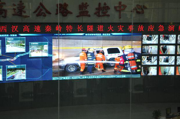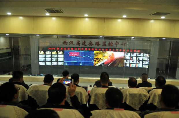 指挥。通过“西汉应急指挥系统”,以数据可视化、信息立体化方式,立即开展全方位、多角度、智能化应急调度指挥。隧道群火灾检测系统提示发现火情,随后,启动应急预案,应急指挥调度系统生成指令,通知路政、交警、应急救援、养护、清障、机电部门,同时通知地方公安、消防、医疗赶赴事故现场协助救援。上下行交通管制点路警人员回复确认指令,实施交通管制,救援车辆快速抵达事故现场。