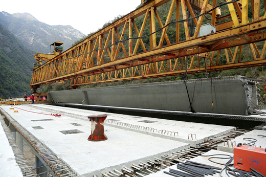 3月17日,西镇高速公路西乡泾洋河特大桥XZ-04合同段钢板混凝土组合梁与XZ-05合同段预制箱梁顺利实现中部单幅对接。