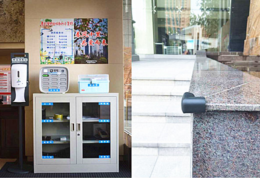 二是增设智能消毒设施。为避免交叉感染和清新空气,卫生间安装了自动皂液机和喷香除菌机,在一楼大厅和会议室安放了移动消毒机,为员工提供感应无接触式消毒。