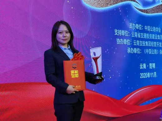 11月17日,由中国公路学会主办、《中国公路》杂志社承办的第七届“最美中国路姐”表彰大会在云南昆明举行,省高速集团汉川分公司“栈道新芳”内训师团队荣获“最美中国路姐团队”称号,汉宁分公司工程养护科副科长李萌荣获“最美中国路姐”称号,西禹公司富平收费站站长王新荣获“最美中国路姐入围奖”称号。
