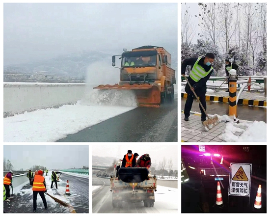 面对今冬首场降雪,宝鸡分公司根据除雪保畅演练情况主动出击,第一时间启动了应急预案,应急保畅人员迅速集结,迎风雪、战严寒,融雪剂装车,铲雪车启动,全面拉开了2020年冬季道路除雪保畅大幕。分公司安排铲雪车对路面积雪进行不间断清除,并抛洒融雪剂,防止路面积雪结冰,铲雪车和融雪剂撒布车三班运转,人歇车不歇连续进行作业,保障道路降雪期间安全畅通。同时,在辖区易结冰路段、桥头等部位摆放锥形桶,设置安全警示标志牌,提醒司机雨雪天气时谨慎驾驶。除雪期间,养护与路政等部门密切配合,加强作业车辆安全警戒,保障除雪作业安全。各收费站及时清除收费站广场和车道积雪,收费员提醒司机雪天路滑谨慎驾驶,加强便民服务亭热水供应,服务车辆安全通行。