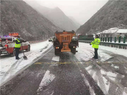 突出重点。突出8个除雪除冰重点区域,采取机械与人工相结合的方式,加大撒布频次和撒布量,在隧道出入口、桥面、弯道、长大下坡等重点点位,采取固态和液态融雪剂交替撒布的方式,科学高效除雪。快速处突。发挥朱雀驻勤点预警执勤作用,突发事件处置做到出勤快、处置快、撤离快、疏导快;在秦岭南北坡,朱雀停车区和皇冠收费站设立大型物资储备点,储备分流标志牌和锥形桶,方便就近取用,提高事故防范能力和处置效率。加强宣传。沿线31处情报板发布“雪天路滑,减速慢行”安全提醒,利用涝峪口安全站、朱雀驻勤点开展行车安全宣传,向22个大货车司机群发布行车须知、安全提醒、路况信息,增强司乘安全行车意识。做好服务。暖水瓶服务队和青年志愿者走向车道,为社会司乘提供服务和帮助,沿线收费窗口、服务岗亭准备热水和姜茶,温暖司乘回家路。