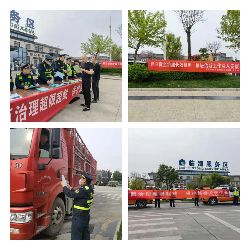 图为总队第一支队在临潼服务区开展集中宣传活动,通过悬挂横幅、设置咨询点、发放宣传单等方式,向过往行人和司乘人员详细讲解高速公路超限超载治理、路政执法等方面的法律法规和政策规定。