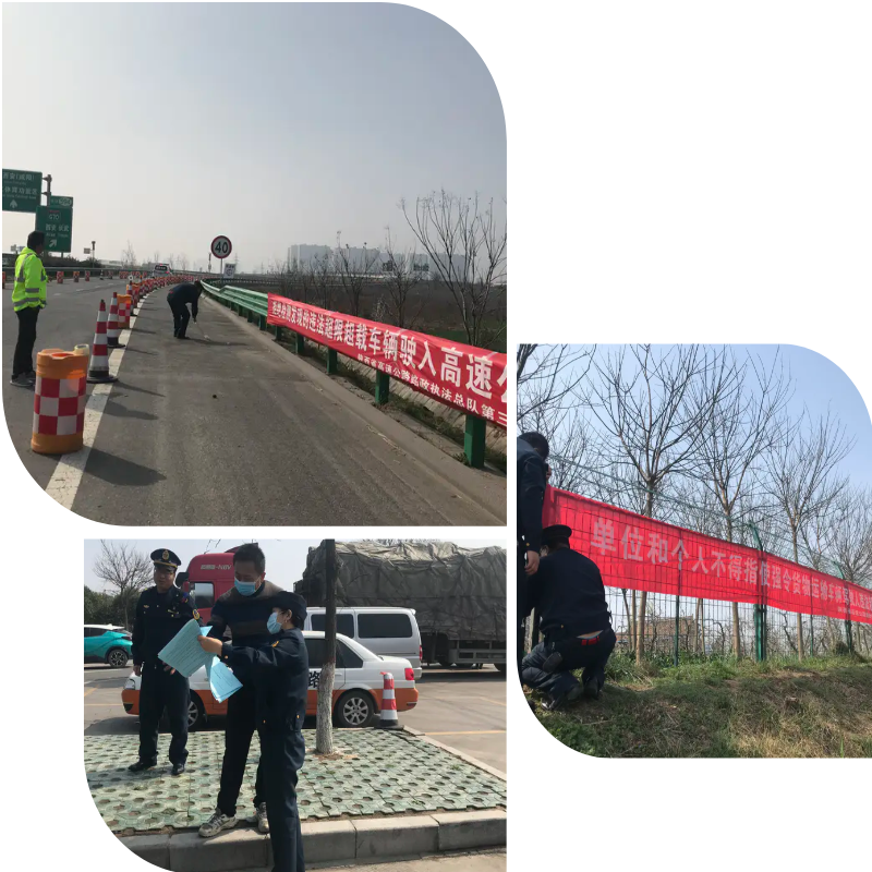 图为总队第八支队在高速公路收费站、服务区悬挂宣传横幅,设立宣传服务点,向广大交通参与者发放宣传单,解读治超政策法规,普及超限超载运输危害,大力宣传治理车辆超限超载的重大意义,进一步扩大治超宣传的覆盖面和影响力。截至目前,共出动宣传车4台次,悬挂宣传横幅8条,发放宣传单5000余份。