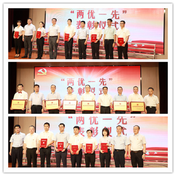 活动现场布置喜庆庄重,大屏幕上庆祝中国共产党成立100周年标识熠熠生辉,现场气氛热烈。表彰大会上,10名优秀共产党员、10名优秀党务工作者和6个先进基层党组织受到表彰,大会向受表彰的优秀个人和先进集体代表颁发了证书和奖牌。