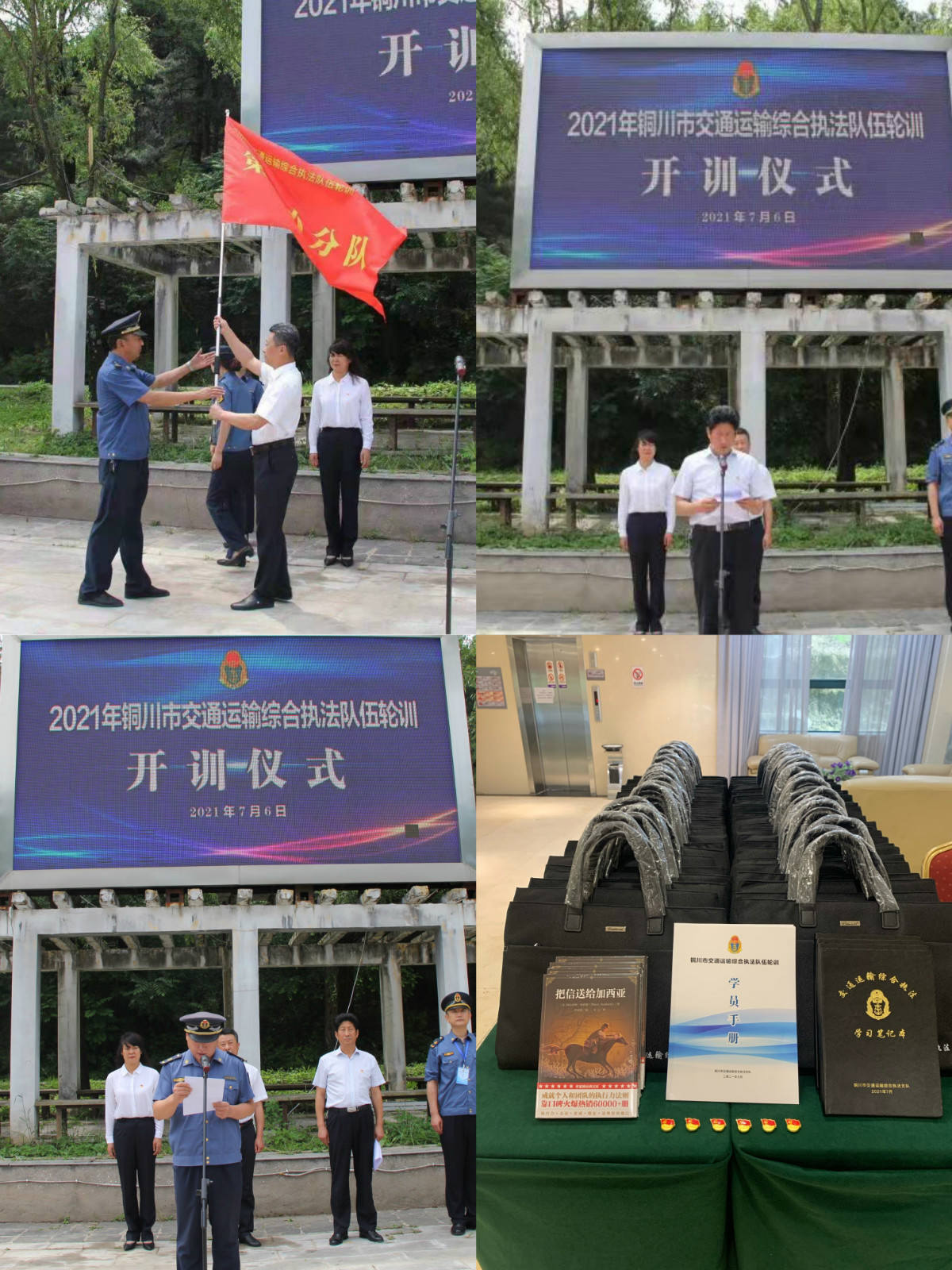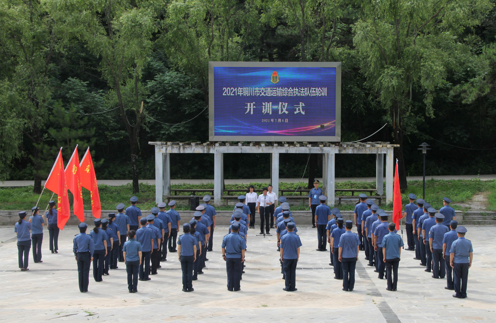 交通运输综合执法人员迅速集结后,在玉华宫培训中心举行了2021年铜川市交通运输综合执法队伍轮训开训仪式,市交通运输局党委副书记陈俊杰出席并讲话,市交通运输综合执法支队班子成员及各区县交通运输综合执法大队、支队各科室、普通干线国省大队共60余人参加了开训仪式。