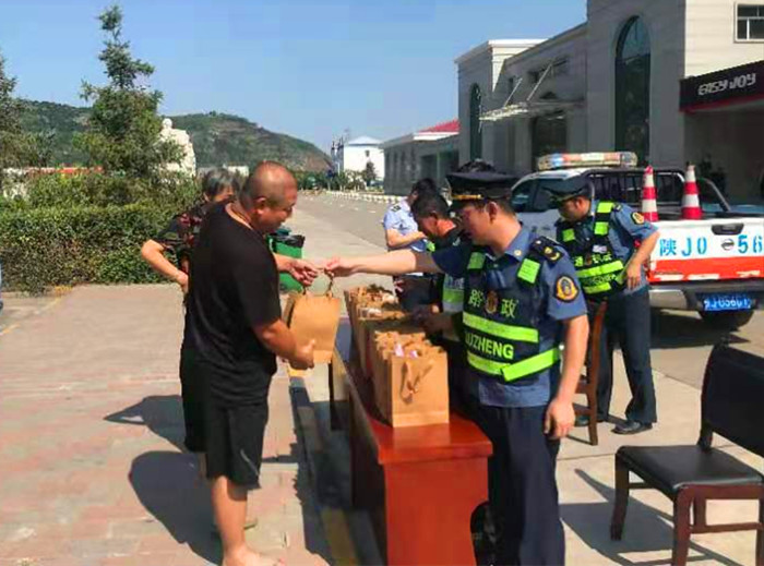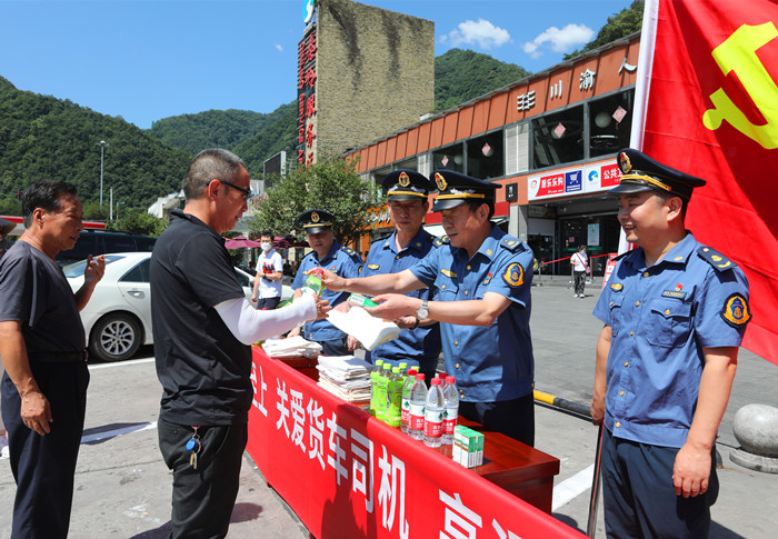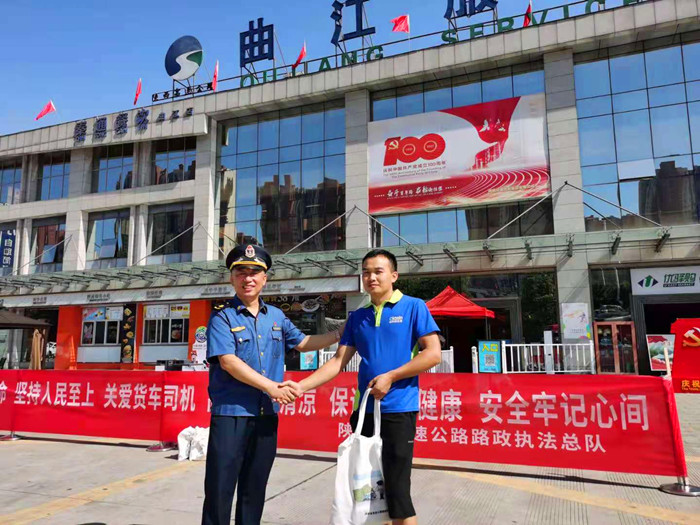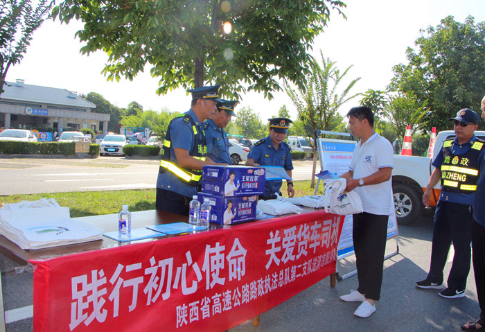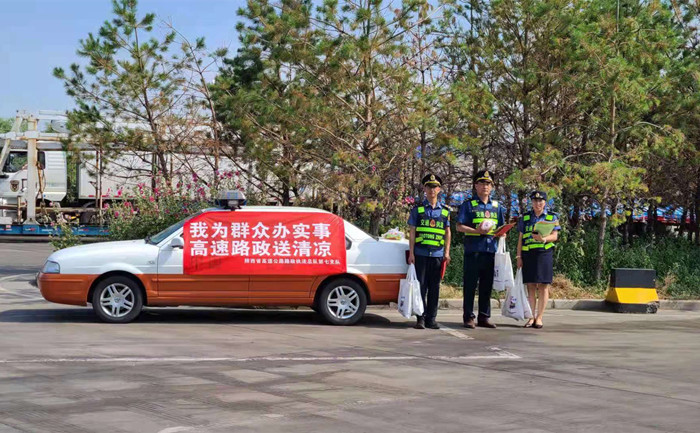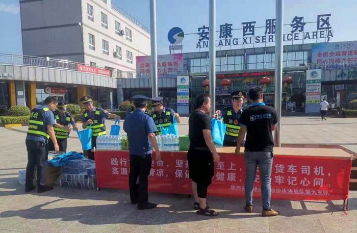 (图为总队第一支队在临潼服务区为货车司机“送清凉”)