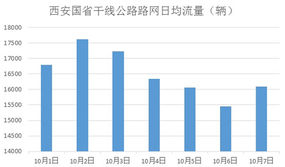 今年国庆假期预计西安境内普通干线公路日均流量约1.65万辆,同比增长4%。预测10月2日车流量最大,日均流量约1.76万辆。国庆节期间普通干线公路路网流量预测如下: