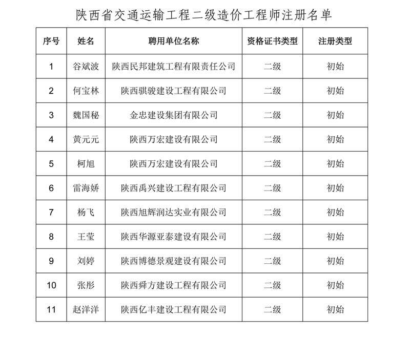 附件:陕西省交通运输工程二级造价工程师注册名单